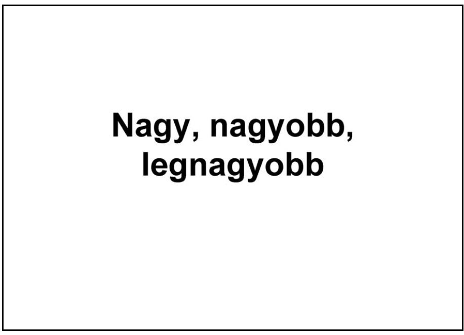 - Az 1. dián a cím szövege 60 pontos méretű, félkövér stílusú, tetszőleges, jól olvasható betűtípusú és középre igazított legyen!