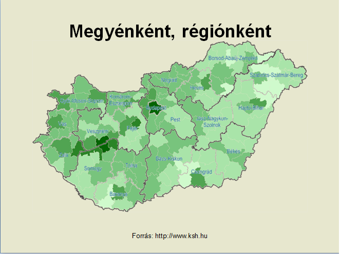 - A második dia közepén helyezze egymásra a tavbesz.gif és a megyek.gif képeket a mintának megfelelően! Az illesztéshez a tavbesz.gif kép méretét növelje vízszintesen és függőlegesen is 10%-kal, a határoló vonalak takarják a színhatárokat!