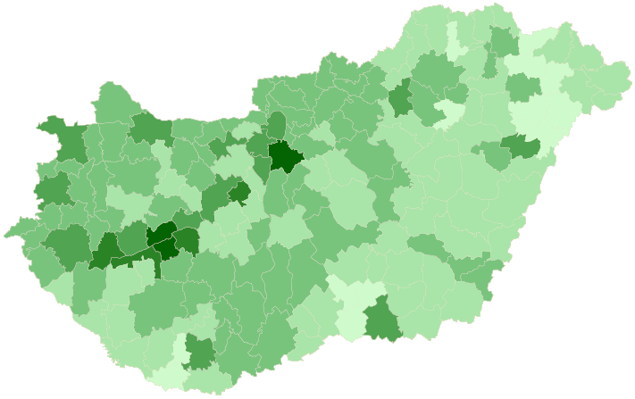 - A téglalapokat töltse ki a térképen látható zöld árnyalataival! Ezek fentről lefelé haladva a következő RGB kódokkal adhatók meg: (207; 250; 204), (169; 228; 169), (120; 196; 125), (81; 164; 81), (42; 132; 38), (4; 100; 3).